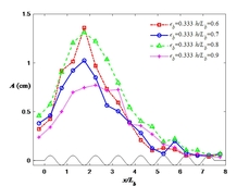| 连续沙波地形上的波流相互作用机理 设计开展了147组波流水槽试验,应用多重尺度摄动解析,发现在相对水深0.6~1.0和弗罗德数0.24~0.31的范围内,亚临界水流经过连续沙波地形时会激发逆流行进波这一自然现象,阐明逆流行进波的波形产生与成长机制是基于沙波和波相位逆流传播的两个波组成的三波共振组合与地形上部水流流速接近共振波的极限流速条件的联合作用。