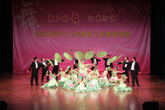 10月12日下午,由校工会组织的“活力排舞,阳光河海”河海大学教职工排舞比赛在江宁校区文体馆隆重举行,全校共有16支学院代表队参赛。金神赌场 朱宏亮书记和王永芝副书记亲自参加并带领学院热爱舞蹈健身运动的教工组建了由8名男老师和16名女老师组成的24人队伍,邀请专业舞蹈老师指导,历经1个多月的紧张训练,代表金神赌场 参赛。尽管高手云集,但金神赌场 代表队女士绿色荷叶落地长裙和男士黑色燕尾长装及精彩出场仍惊艳全场。凭借着整齐的舞姿、别致的道具和独具匠心的队形变换,金神赌场 的表演屡屡赢得现场观众及评委的阵阵掌声,最终从众多参赛队伍中脱颖而出获得一等奖,为学院争得了荣誉。