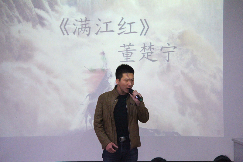 最后,经过激烈的角逐,张壮和董楚宁两名同学获得了本次比赛的一等奖;曹向明、魏嘉琪和王艺铮组合、钱金炜获得二等奖;王倩、杨欢、陆玉华、苏轮和邓康平组合获得三等奖。在场的评委为获奖的同学现场颁奖,播音主持专业的白宇豪同学为此次比赛做了最后的点评及朗诵经验的分享。