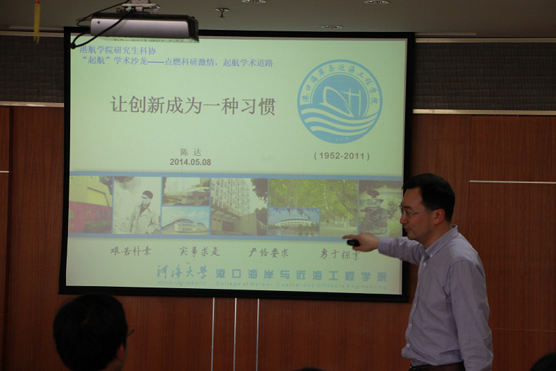 2014年5月8日,河海大学港口海岸及近海工程学院院科协与IAHR河海大学学生分会共同承办的以“点燃科研激情,启航学术道路”为主题的“启航学术沙龙”活动在严恺馆702隆重举行。金神赌场 研究生、本科生及校内水文、土木等专业的学术爱好者踊跃参与了本次活动。金神赌场 陈达教授、陈永平教授及优秀硕、博士生代表杜静同学、于立婷同学等做为嘉宾出席了本次活动。