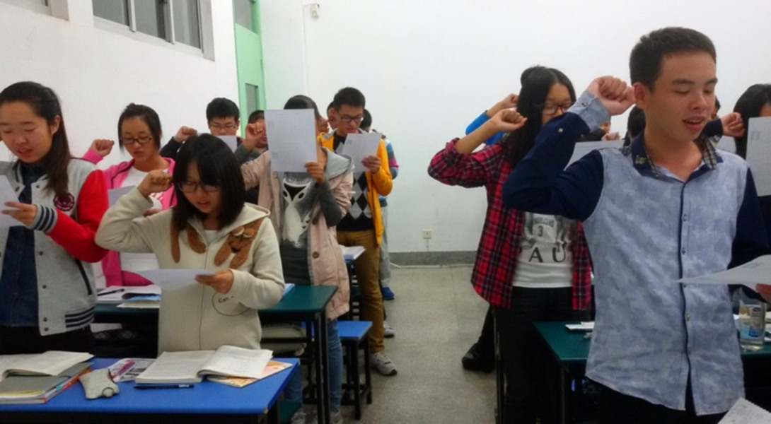 为了督促同学们认真准备即将到来的英语四六级考试,引导同学们诚信考试、抵制作弊念想,2014年10月14日晚,港航专业与海洋专业的同学分别在致用楼319以及致用楼206教室举行了“考前承诺”宣誓仪式。