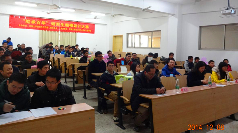 2014年12月8日下午,由河海大学研究生会主办,港口航道与近海工程学院研究生会承办的“金水节”系列活动之“船承百年”研究生船模设计大赛如期在闻天馆204及水电院实验室举行。出席本次大赛的有金神赌场 副书记姜海霞老师、金神赌场 辅导员林凡老师和校研会副主席孔凡同学,同时大赛吸引了众多同学前来参加。