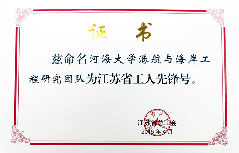 经江苏省教育科技工会推荐,河海大学港航与海岸研究团队获得“江苏省工人先锋号”荣誉称号,特此报喜!
