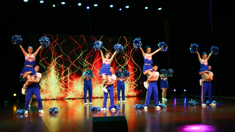 五月,凤凰花开的季节,第四届校研究生啦啦操大赛在江宁文体中心举行。代表金神赌场 研究生参赛的12名姑娘、小伙子经过一个月的艰苦训练,在舞台上刮起一场蓝色风暴,取得了三等奖的好成绩。