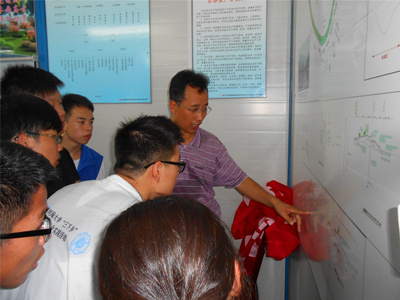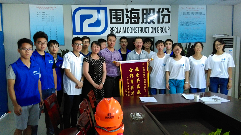 在汪总的安排下,队员们一早驱车前往今天实践的第一站:浙江围海建设集团温州分公司在温州桥头镇的瓯江治理工程现场。瓯江治理工程是浙江围海建设集团承建施工的水利类工程,工期两年,施工路线长达8.3公里,项目总投资约1.75亿。在会议室里,教授级高工宫灵杰给队员们讲解工程上的有关情况以及近期的几个工程项目和总体发展战略,同时还不厌其烦地为大家讲述工程建设中的附属问题,包括工程的资金、政策、审批流程以及与工程相关的各单位制衡关系等。之后,在宫教授和项目负责人李经理的带领下,队员们来到工程施工现场,依次参观了瓯江治理工程三个代表性的工段,并查阅了相关图纸,在现场结合实物听宫教授讲解防浪墙、混凝土灌注桩、高压旋喷桩、水泥搅拌桩等之前只在书本上了解的名词。听完宫教授的讲解,队员们不禁感叹“纸上学来终觉浅,绝知此事要躬行”的道理,一项造福社会的水利工程项目的顺利实施,绝不仅仅是从书本上学来的各类力学和材料学知识,更多的是实际操作过程中的学以致用和经验积累。与此同时,队员们也了解到,浙江围海集团每年也在河海大学招收应届毕业生,除了汪总以外,目前公司里还有其他校友担任各项职务。看着眼前这个即将完工的工程,想象着这么多工程都有河海人在奉献青春,挥洒汗水,队员们顿时觉得自己身为河海的水之子,是多么让人骄傲和自豪的事情!