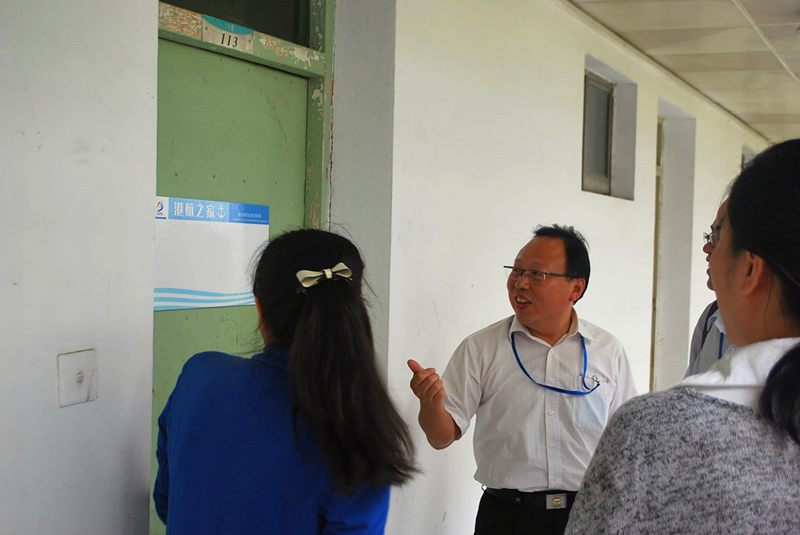 学生宿舍门上特制的门牌吸引。据安杰晶老师介绍,这是由学院统一设计、附有学院院徽及河海大学百年校庆标识的门牌,四周配有蓝色波浪的图案,充分展现港航特色;中间部分留白,由学生自主设计。郑院长、胡书记等领导对此安排表示赞赏。来到新生宿舍,学院领导细心了解、耐心询问新生的家庭及现在的食宿情况,对现场了解到的问题给出了具体意见和建议,并鼓励新生努力克服困难,坚持不懈、勤奋学习。