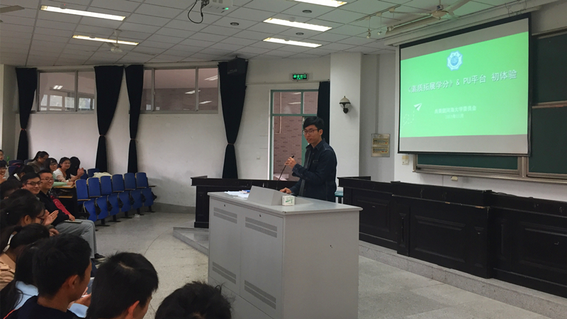 会议分为两部分,第一部分是安杰晶导员邀请作为港航学长的河海大学团委陈智老师为大家介绍了素质拓展学分实施及认定办法和PU平台的具体操作。陈老师首先介绍了PU平台中素质拓展学分学时的内容及基本使用方法。之后通过一系列的表格及流程图,详细指导同学们如何通过PU平台发起活动参加活动获得学时。陈老师的轻松幽默的讲解在使同学们对PU平台有一定的认识之后,极大的调动了同学们使用PU平台参与各类丰富多彩的活动的热情,于是紧跟老师介绍之后,同学们积极发问,现场气氛十分活跃。
