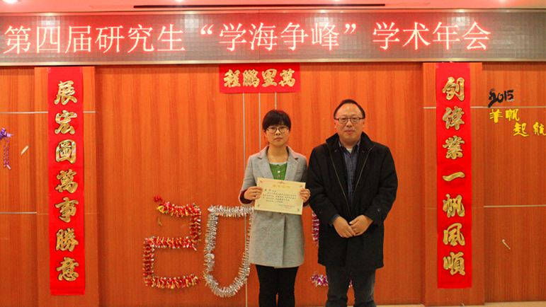 会议首先由胡忠华书记致辞。胡忠华书记在高度肯定此次学术年会价值的同时,总结了本次活动的四个特点:1、参与率高;2、学术水平高;3、利用新媒体宣传程度高;4、导师重视程度高。同时也对每位研究生提出了自己的四点希望:希望我们发扬急流争锋的超越精神;希望我们发扬“献身、负责、求实”的水利精神;希望我们发扬敢于创新、敢于批评的科学精神;希望我们发扬相互交流的协作精神。随后诸裕良副院长公布获奖名单。宣布一等奖4名,二等奖6名,三等奖8名,19位优秀报告人以及1个最佳人气奖和1个最佳报告奖。紧接着由参加本次闭幕式活动的领导和老师们给获奖选手颁奖,并合影留念。最后,胡忠华书记宣布本届“学海争峰”学术年会闭幕。