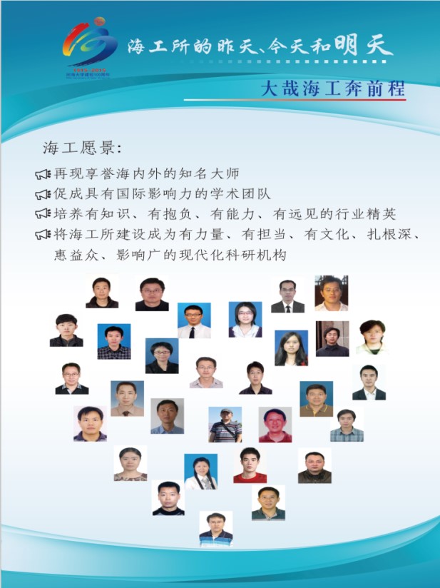 该展览由“前言”、“昨天”“今天”、“明天”和“后记”五个板块组成。“前言”中详细记述了海工所自1979年由水利部批准组建发展至今的历史沿革,明确了校庆期间组织本次文化展的定位和意义。“昨天”板块由“海洋攻关自请命”、“心无旁骛力践行”、“春风化雨潜滋润”和“报得春晖功渐成”四个展板组成,展示了海工所历史发展过程中,特别是海工所发展初期老一辈海工人在为我国海岸及海洋工程事业发展及人才培养等方面表现出的努力拼搏的精神、勇于担当的气魄和高瞻远瞩的智慧。“今天”板块由“薪火相传心相映”和“硕果累累事业兴”两个展板组成,展示了海工所近五年在人才培养、科学研究、服务社会已经团队建设等方面的主要成绩,也展示了海工所全体同仁团结友爱的融洽气氛、乐观向上的积极心态和井然有序的前进势态。“明天”板块由“新人应有新气象”和“大哉海工奔前程”两个展板组成,展示了海工所未来重点发展的学科方向已经发展愿景,展现了现代海工人继往开来的决心和稳步前进的信心。“后记”板块再次强调了本展览在回顾历史、总结现在和展望未来中的作用,并对包括提供历史资讯的老一辈海工人等所有为本次展览活动付出辛苦努力的人和组织表达了最真诚的谢意。
