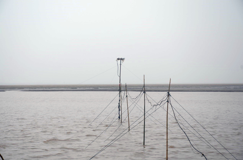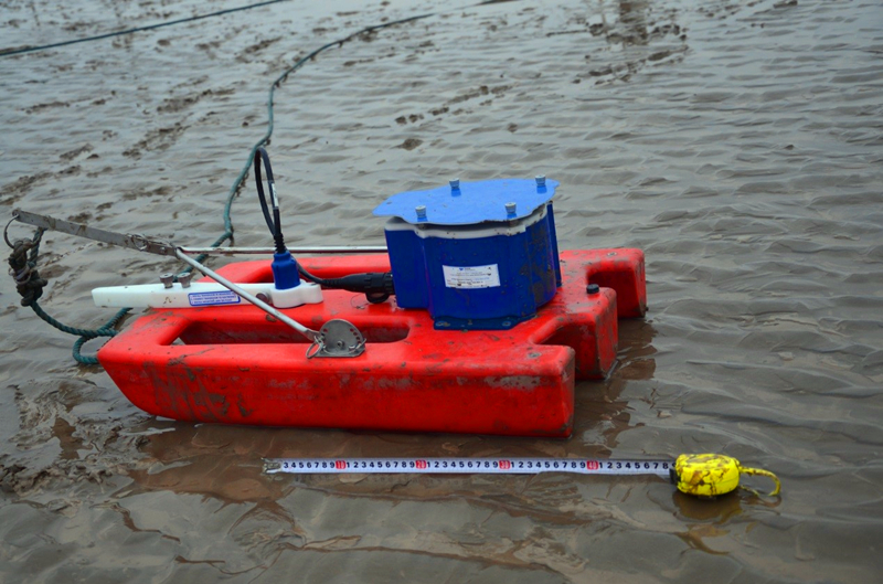 本次观测采用了团队发明专利“潮滩近底边界层水沙观测方法及系统”(授权号ZL201410029922.5),使用了ADV、ADCP、阔龙、小威龙、OBS等约20台先进的现场观测仪器,对潮间带剖面三个站位的近底层水沙过程和西洋深槽水沙过程进行了历时三天的同步观测。结合已积累三年的潮滩剖面逐月观测资料,旨在探索淤泥质潮滩典型剖面演变的动力学机理。