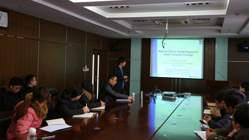 2016年1月21-23日,日本京都大学防灾所Tomohiro Yasuda博士应陶爱峰副教授邀请来金神赌场 开展学术交流。访问期间,Yasuda博士做了题为“Recent Storm Surge Research under Climate Change”学术报告,重点介绍了风暴潮数值模式的最新进展,分析总结了全球气候变化背景下,未来全球特别是西北太平洋气象及其影响下风暴潮演变特性,并与师生们进行了深入交流。学术报告后,参观了金神赌场 实验中心,蔡辉主任对实验中心及主要仪器设备进行了介绍,为后续研究合作奠定了良好基础。