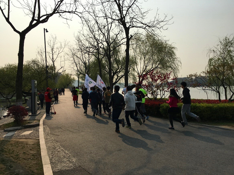 此次活动吸引了河海大学的四十余名长跑爱好者,大家都对这次活动寄予很高的期望。我们根据不同里程设置两种项目,分别为6公里和10公里的环湖长跑。上午8点半参赛人员和工作人员到达玄武湖公园,进行选手签到、合影留恋、跑前热身。8点50分长跑比赛正式开始。选手们举着宣传的旗子,在公园内跑步,向游人宣传“世界水日”“中国水周”,普及节水意识,引来的众人的瞩目。在起点处,旁边游人也饶有兴致地询问我们的活动,工作人员热情地向他们介绍活动的意义,号召大家重视节水与水资源保护。半小时后6公里环湖长跑参赛者陆续到达终点,50分钟后10公里环湖长跑参赛者也相继到达。10点最后一名参赛者安全到达终点,画上了一个圆满的句号。所有的参赛者都获得了精美的纪念品。活动结束之后,我们工作人员随机采访了几名参赛选手,他们都纷纷给予很高的评价,并希望类似的活动要继续举办下去。
