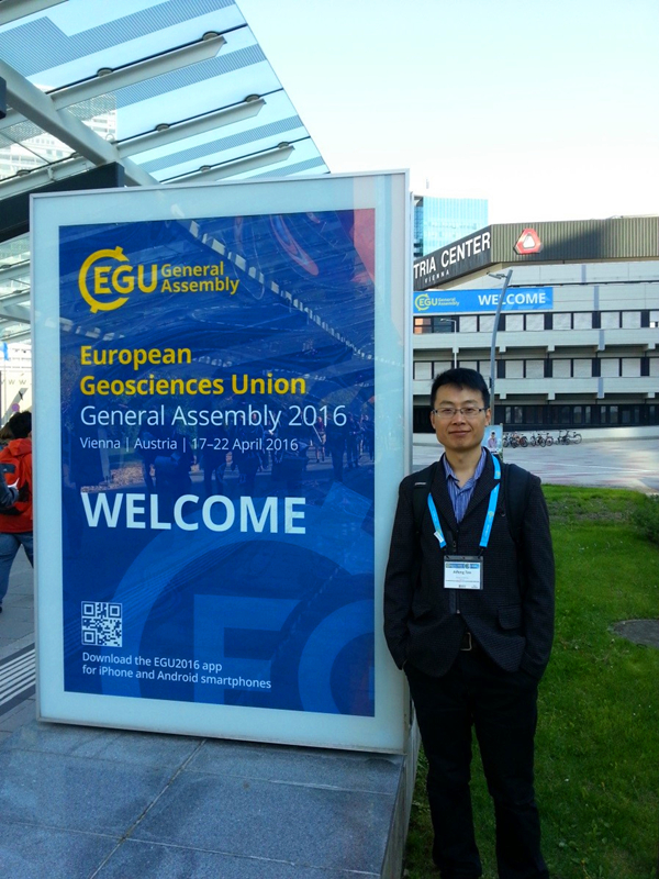 2016年4月19日至23日期间,金神赌场 陶爱峰副教授参加了在奥地利维也纳举办的EGU(European Geosciences Union)2016年国际学术年会。会议期间,陶爱峰副教授在NH5.2自然灾害分会场的极端海洋与非线性波浪方向专题组做了题为“Preliminary investigation on the relation between maximum wave height and wave spectra”的学术报告,并作为优秀学生海报和演讲奖(Outstanding Student Poster and PICO (OSPP) Award)的评选专家参与了该奖的评选活动。