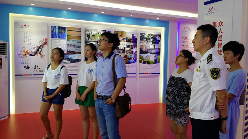 步出会议厅,刘书记热情地向实践团队介绍起2015年南京海事局创建成功的“青年文明号”企业文明称号,并带领实践团队参观船舶交通管理中心、南京水上搜救中心,亲历感受海事部门的日常工作,为实践团队留下直观深刻的印象。