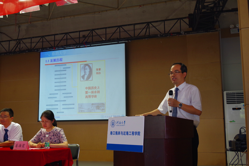 教师代表何良德老师以学长、家长和老师的三重身份给予了新生生活上的关怀,并告诉了他们该学什么、该怎么学、为什么学。老生代表2013级王衍桥对新生表示热烈欢迎并为他们分享自己的大学经历。新生代表陈彦哲代表新生表达了迎新几天的感受,带领全体新生共同宣誓,做一名合格的港航人。
