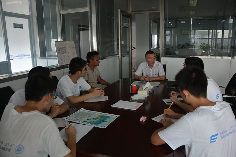 25日下午,队员们参观了江苏沿海开发(东台)有限公司。公司负责人王总经理向队员们介绍了有关东台条子泥围垦区农业方面的相关情况。通过王总经理的介绍,队员们了解到,围垦区的利用按622的比例分为农业用地、生态园区和待开发地区。通过这样的用地分配,确保了围垦地区能够在不破坏生态环境的情况下,产生较高的经济效益。实践团向王总学习了盐碱地除盐的四种常用方法,并从王总那里得知,为了确保围垦区的农业用水,目前当地已经修了两个总面积达300亩的水库。之后,该公司2010届港航学长接待了队员们,同大家交流了对港航专业学习的经验,并传授了他六年来的工作心得。实践团对整个条子泥围垦区的岸堤防护和农业用水情况有了整体的了解。