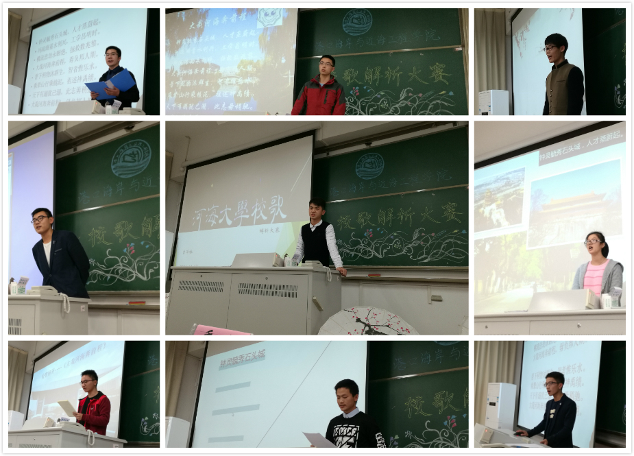 品析校歌内涵,丰富河海底蕴,是一次文化的交流,更是一场思想的碰撞。“河海不择细流,故能就其深”,纳各方思想,方能寻得其精髓;角度各异对校歌剖析,方能探得河海情怀。这场盛典之后,相信同学们一定会努力学习专业知识,全面发展,如校歌唱的那样——毋负邦人期!