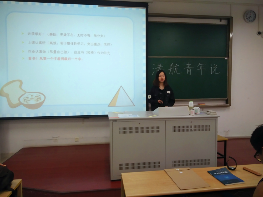 2017年4月16日,港航青年说系列讲座在博学楼B208教室继续开讲,本期讲座邀请到2014级本科生汤子璇和陈雪2位同学,为2016级新生做了本学期课程的学习指导。
