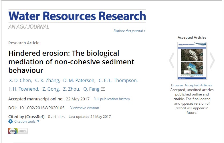 近日,金神赌场 15级博士生陈欣迪同学以第一作者身份在一区期刊《Water Resources Research》上发表了题为Hindered erosion: The biological mediation of non-cohesive sediment behaviour的学术论文,其攻读博士学位的导师是张长宽教授。该论文的本校其他合作作者包括龚政教授、周曾副研究员以及环境学院冯骞副教授。此外,来自英国南安普顿大学与圣安德鲁斯大学的业内知名学者也合作参与了本项研究。