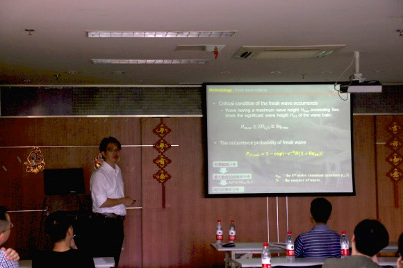 6月2日下午,董东璟副教授在严恺馆702会议室为金神赌场 师生做了题为“作业化畸形波概率预报研究”的学术报告。详细介绍了畸形波研究发展的历程和畸形波概率预报的最新技术。通过畸形波概率业务化预报实例阐明了针对畸形波问题开展业务化预报的可能性,为参会人员特别是相关研究方向的老师和学生开展科研工作带来了新颖的思路,激发了热烈的交流与探讨。会议由郑金海教授主持,20多位师生参加。