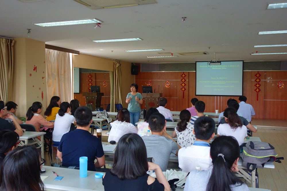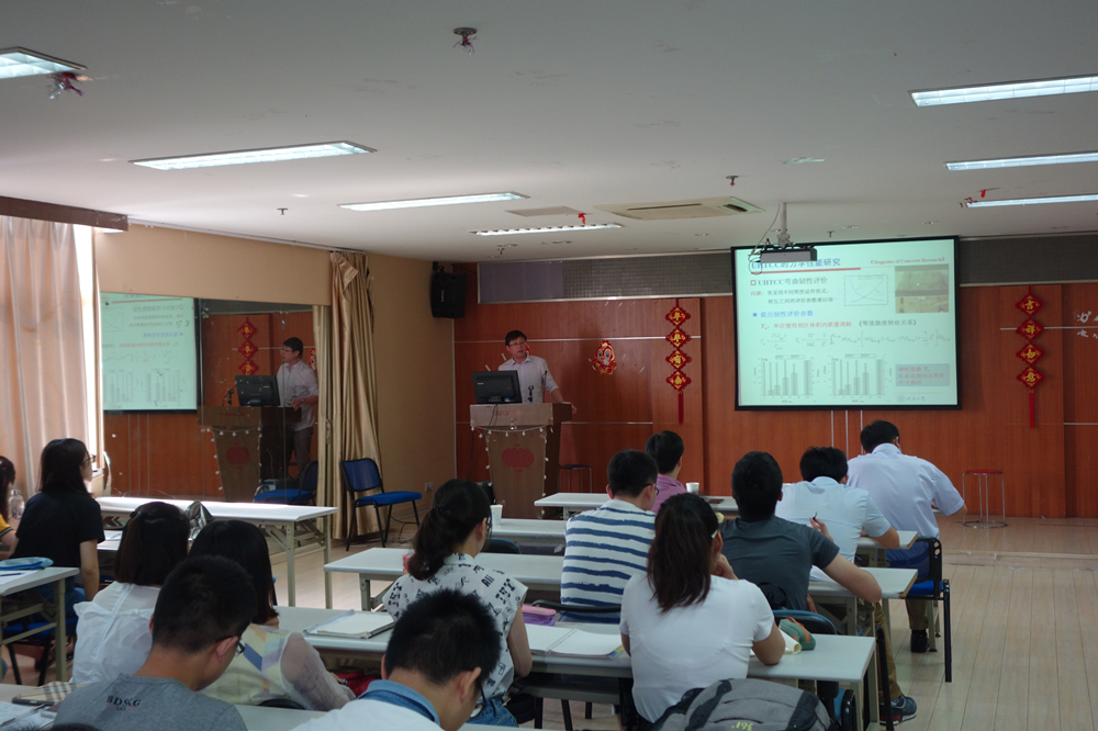 下午两点整,首先由徐福敏教授带来了她的科研经历。徐老师从事于波浪、风暴潮的数学模型研究,她丰富的海外科研工作经历令同学们赞佩不已。在与同学们交流中,徐老师耐心讲解了她对硕士生的培养训练,包括了编程能力、阅读文献进行知识储备的能力、独立科研的能力等。接下来上台的是张弛副教授,他是“土生土长”的河海人,其科研方向是海岸泥沙运动与沙滩整治,他还介绍了在他的课题组中实行的周会制度、文化体育活动。张老师与研究生们聚餐时其乐融融的场景让在座同学们羡慕不已,消除了同学们与老师之间的隔阂。第三位导师是薛米安副教授,他深入浅出的介绍了液体晃荡现象,并与实际工程紧密结合,详细剖析了工程中的液体晃荡问题,例如船舶中的液体晃荡、地震中的液体晃荡等,将同学们从未接触的知识现象解释得浅显易懂。最后一位导师是侯利军副研究员,目前在做高性能材料及混凝土修复与加固方面的研究。侯老师谈及了一些对硕士研究生的要求,他认为对硕士研究生而言最重要的是要肯做事;其次要善于思考实验背后的现象。活动最后,张副院长总结陈词,宣讲会圆满落幕。