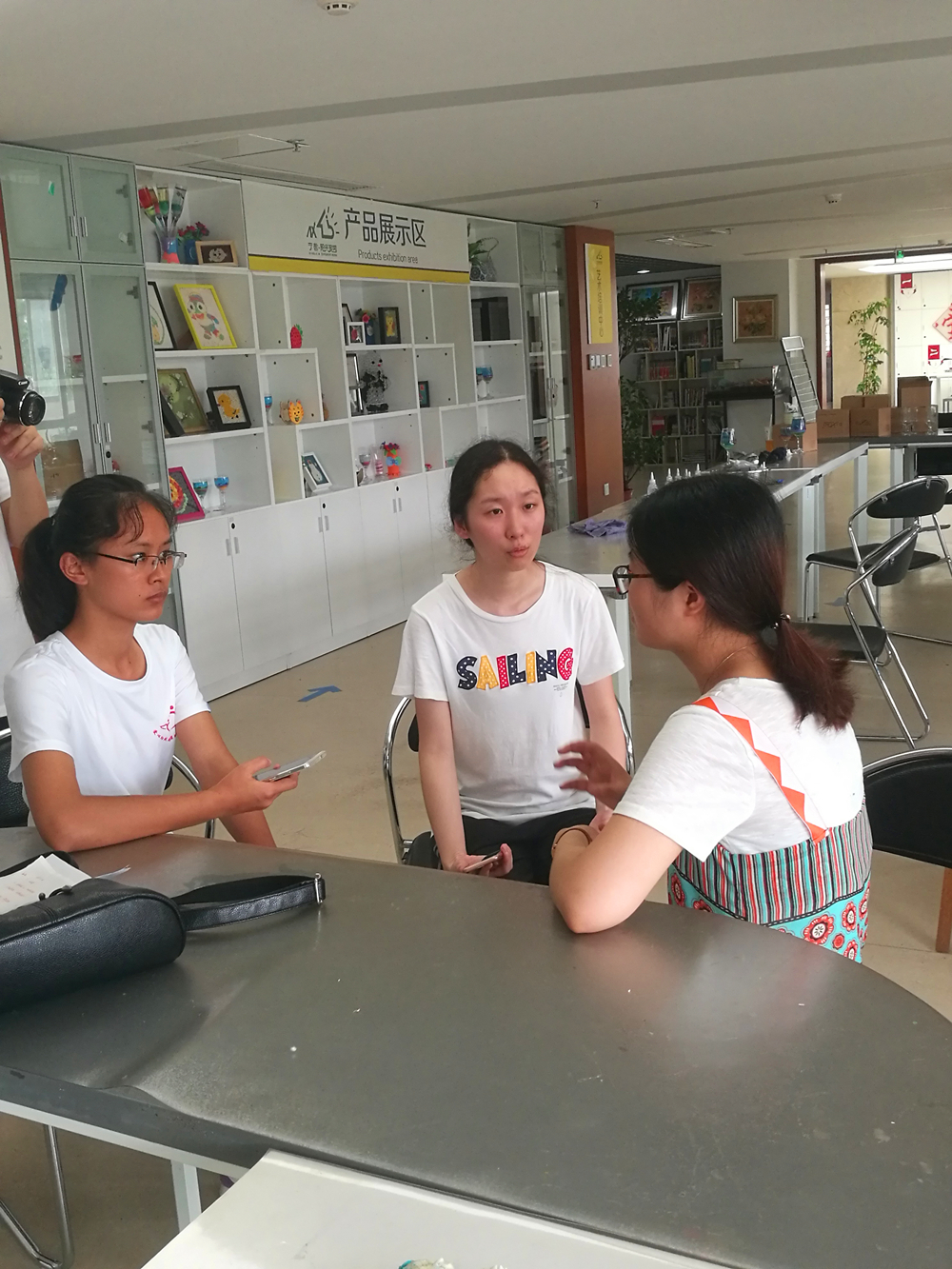 活动期间,队员们曾与南京农业大学、南京航空航天大学的团队合作,一起给孩子们上课,和孩子们做手工、唱歌等等。尽管这些孩子们在智力方面有缺陷,但他们和正常人一样热爱生活,他们天真烂漫,活泼开朗,他们的热情很容易就感染到了身边人。队员们还与南京农业大学的团队合作一起采访了中心的黄俊灿老师、负责人廉杰,从他们口中了解到中心十分缺乏专业的老师,社会给予那些孩子的福利还远远不够,工作人员的待遇也有待提高,中心每年都是入不敷出,但是令人喜悦的是社会对残障人士的关注度正在逐步提高,人们也在逐渐接受并了解这么一个特殊的群体。