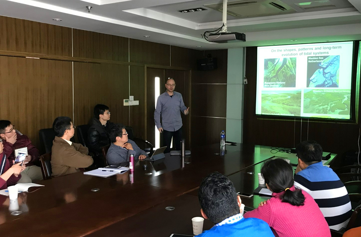 2017年11月20-27日,荷兰乌特勒支(Utrecht)大学地球科学学院助理教授Barend van Maanen博士应周曾老师邀请,来金神赌场 进行了为期一周的学术访问。期间,van Maanen博士围绕其最新的科研进展,作了题为“On the shapes, patterns and long-term evolution of estuaries”的学术报告。在报告中,van Maanen博士介绍了他所属的团队目前应用的数值模拟、物理实验及现场观测等多种技术手段,系统性阐述了红树林为主盐生植物影响下河口地貌的演变过程及机制。报告由周曾老师主持,学院多位从事河口海岸泥沙运动以及地貌学方向的老师以及研究生参加了学术报告会。报告后,van Maanen博士与在座的师生进行了深入的学术交流,气氛活跃。