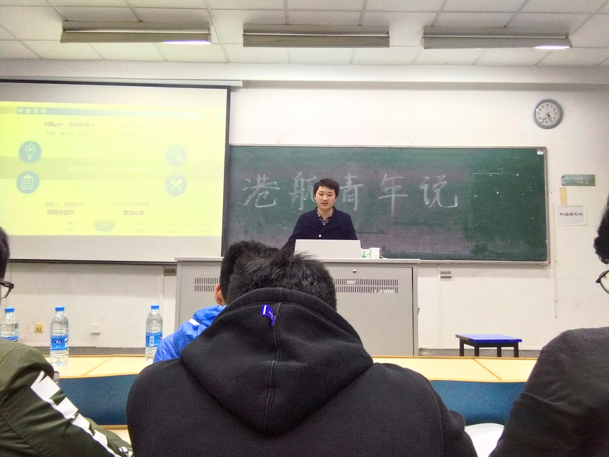 近日,港航青年说系列之大学生创新创业经验交流会在致用楼118举办。本次交流会邀请到了金神赌场 2014级本科生黄健钧、朱超以及商学院2017级研究生张玲。他们分别从创新和创业两个方面,与金神赌场 2016级全体本科生分享了自己的经验。金神赌场 2016级辅导员张同鑫老师出席了本次活动。