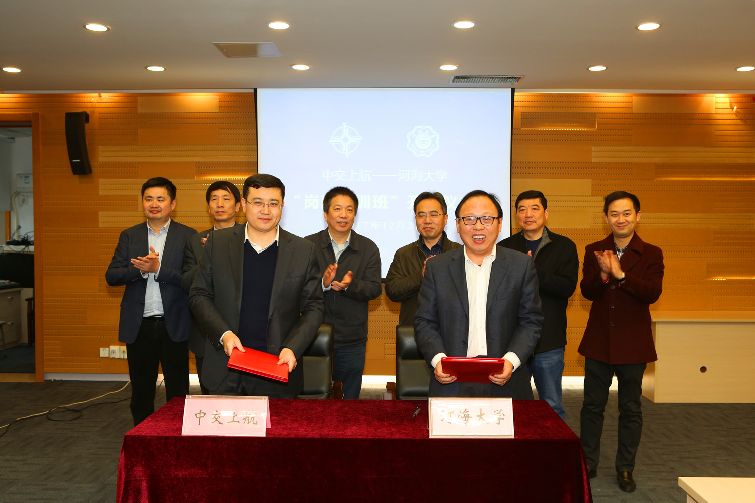 12月2日,中交上海航道局有限公司与我校在闻天馆203举行“岗前培训班”开班仪式。河海大学党委副书记郭继超、中交上海航道局有限公司副总经理曹湘喜出席仪式并致辞,金神赌场 党委书记胡忠华与中交上海航道局有限公司人力资源部副总经理万帮建分别代表双方签订了培训合作协议。中交上海航道局有限公司相关部门、子公司负责人,河海大学相关部门、学院负责人和培训班学员参加了开班仪式,金神赌场 副院长张继生主持会议。