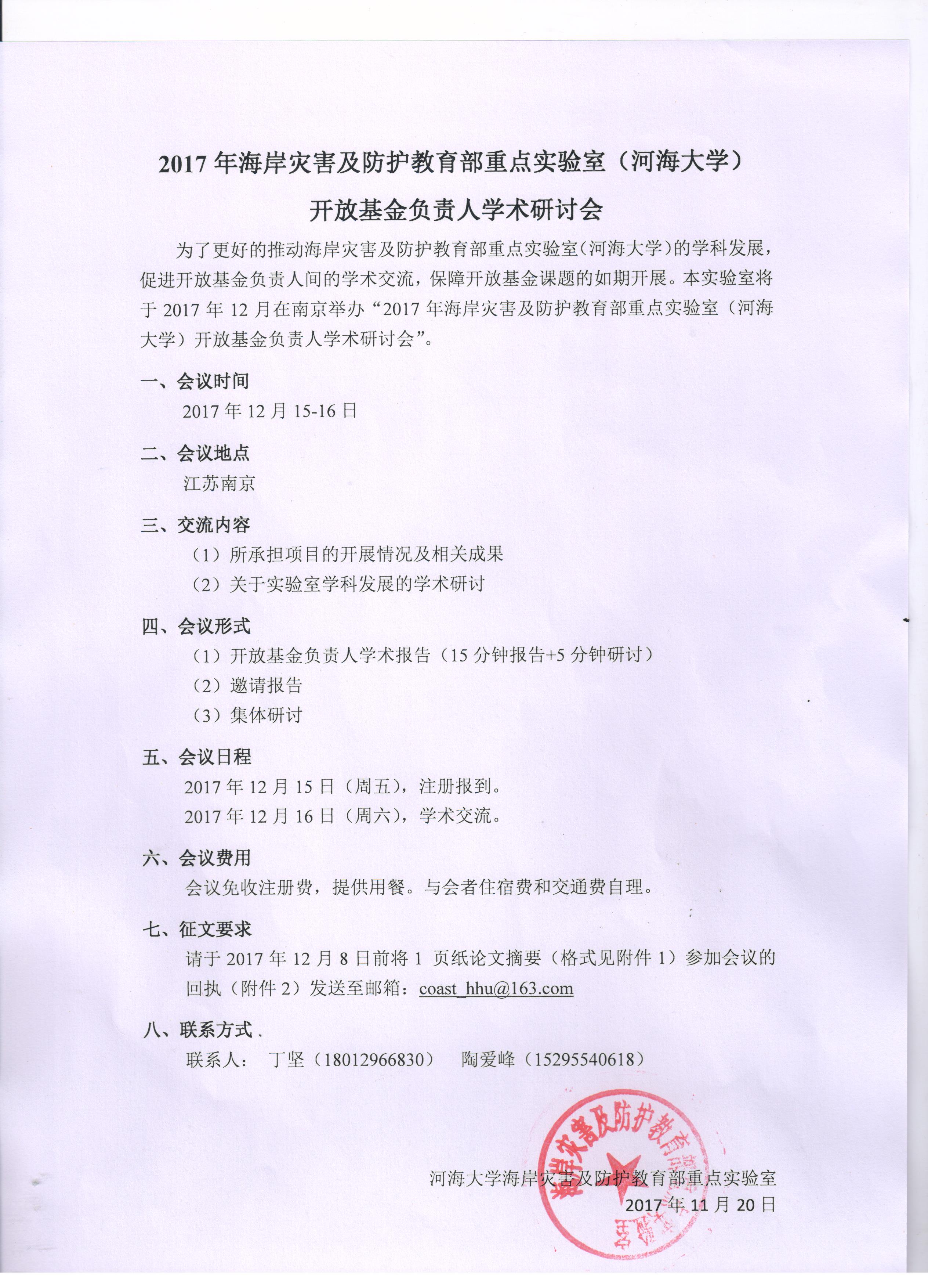 08:00-08:20 | 开幕式 河海大学副校长、实验室主任郑金海教授致欢迎词 |