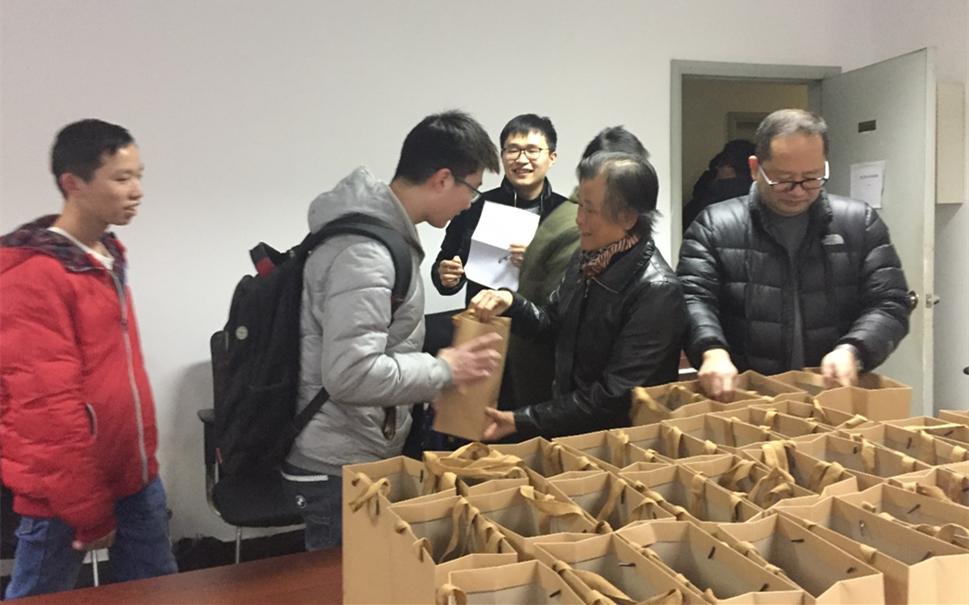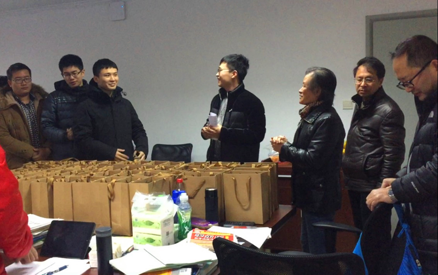 2017年12月14日下午,学院关心下一代工作委员会舒红缨副主任、何春林副主任,委员林凡老师、季超老师为参加2018年考研的2014级本科生送去小礼包,为考研学子送上温暖的鼓励和祝福。