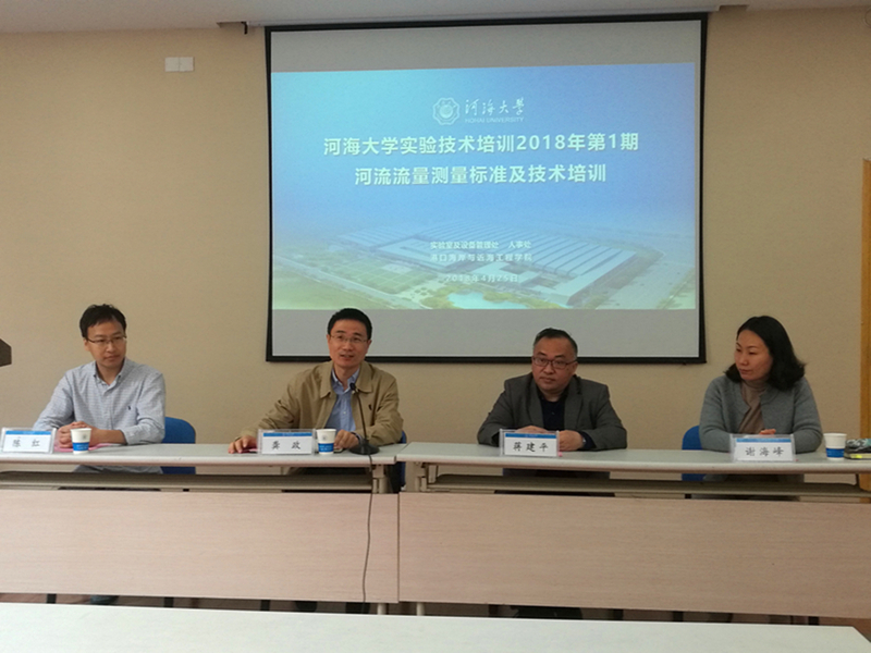 由实验室及设备管理处组织并联合人事处主办,金神赌场 承办的河海大学实验技术培训班(2018年第1期)“河流流量测量标准及技术培训”于2018年4月25日上午8时在闻天馆102开班。金神赌场 和来自水文学院、水电学院、环境学院及常州校区的实验技术教师及部分研究生共计40多人参加了本期培训。金神赌场 院长龚政教授、实验室及设备管理处和人事处相关领导出席开班仪式并发言,就搞好实验技术系列培训给予赞同,并对老师和同学们的参加表示欢迎。