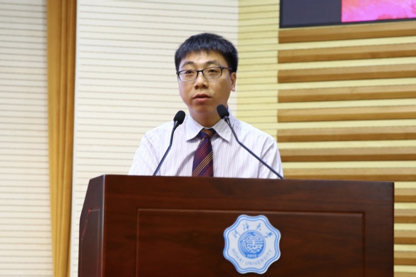 8点30分,典礼仪式正式开始,全体人员起立,奏唱校歌。首先,院长龚政教授向全体学生致毕业寄语。龚院长带领同学们回顾这些年来大家取得的各项成绩以及学院的发展,对同学们提出了三点期望:希望同学们注重务实与创新;希望同学们保持谦虚与自信;希望同学们拥有梦想和担当。