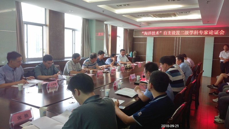 9月21日,学院组织召开了“海洋技术”自主设置目录外二级学科博士点专家论证会。专家组由哈尔滨工程大学李海森教授、南京大学邹欣庆教授、中国船舶重工集团公司第七〇二研究所刘涛研究员、华东师范大学戴志军教授、自然资源部第二海洋研究所周锋研究员、中国海洋大学刘臻教授和南京信息工程大学丘仲锋教授等单位的7位同行专家组成。学院院长龚政教授、学科科研副院长诸裕良教授、教学副院长张继生教授、海洋技术各学科方向带头人以及部分教师出席了会议。