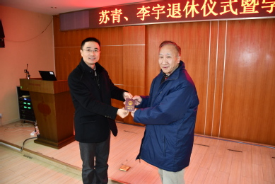 2019年1月8日,学院举办了苏青、李宇老师退休仪式暨学术交流会。院班子成员、各二级机构代表、办公室与实验中心全体教师均参加了本次活动。