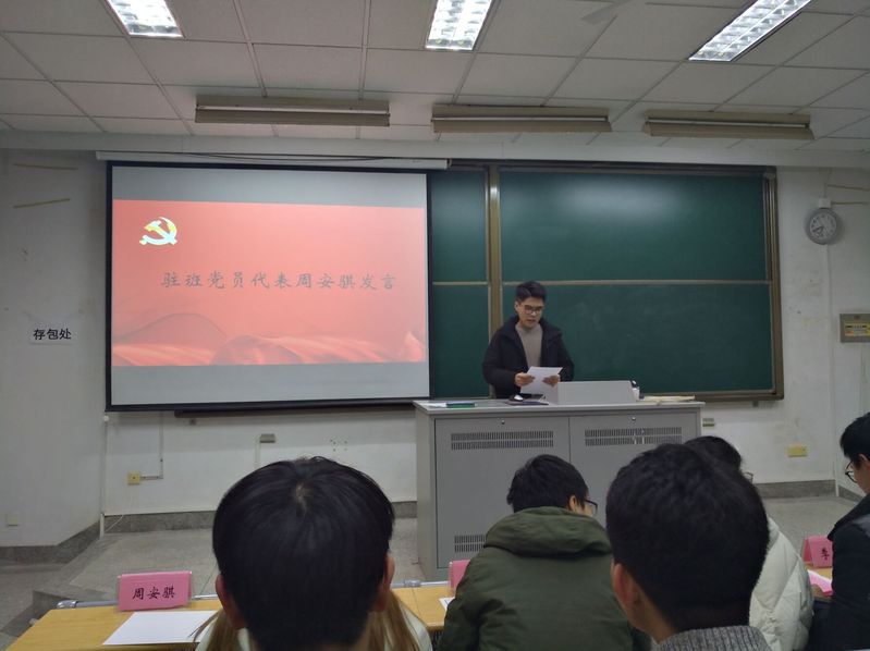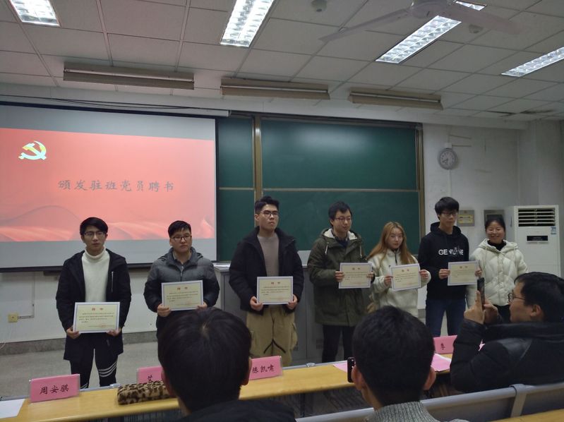 2019年1月14日晚6:30,金神赌场 2018级驻班党员聘任仪式于江宁校区致用117教室成功举行。2018级全体学生参加,辅导员季超、张同鑫、顾钰恒老师以及万文杉、许亚飞、周安骐、陈凯啸、艾欣和王昊等6名驻班党员出席。