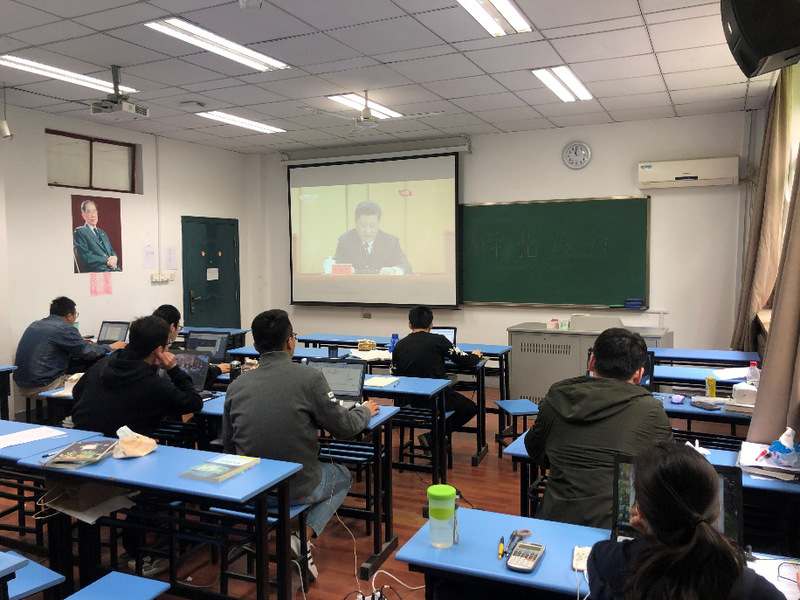 2019年4月30日,学院各班2019届毕业生各班级团员集体观看纪念五四运动100周年大会直播。