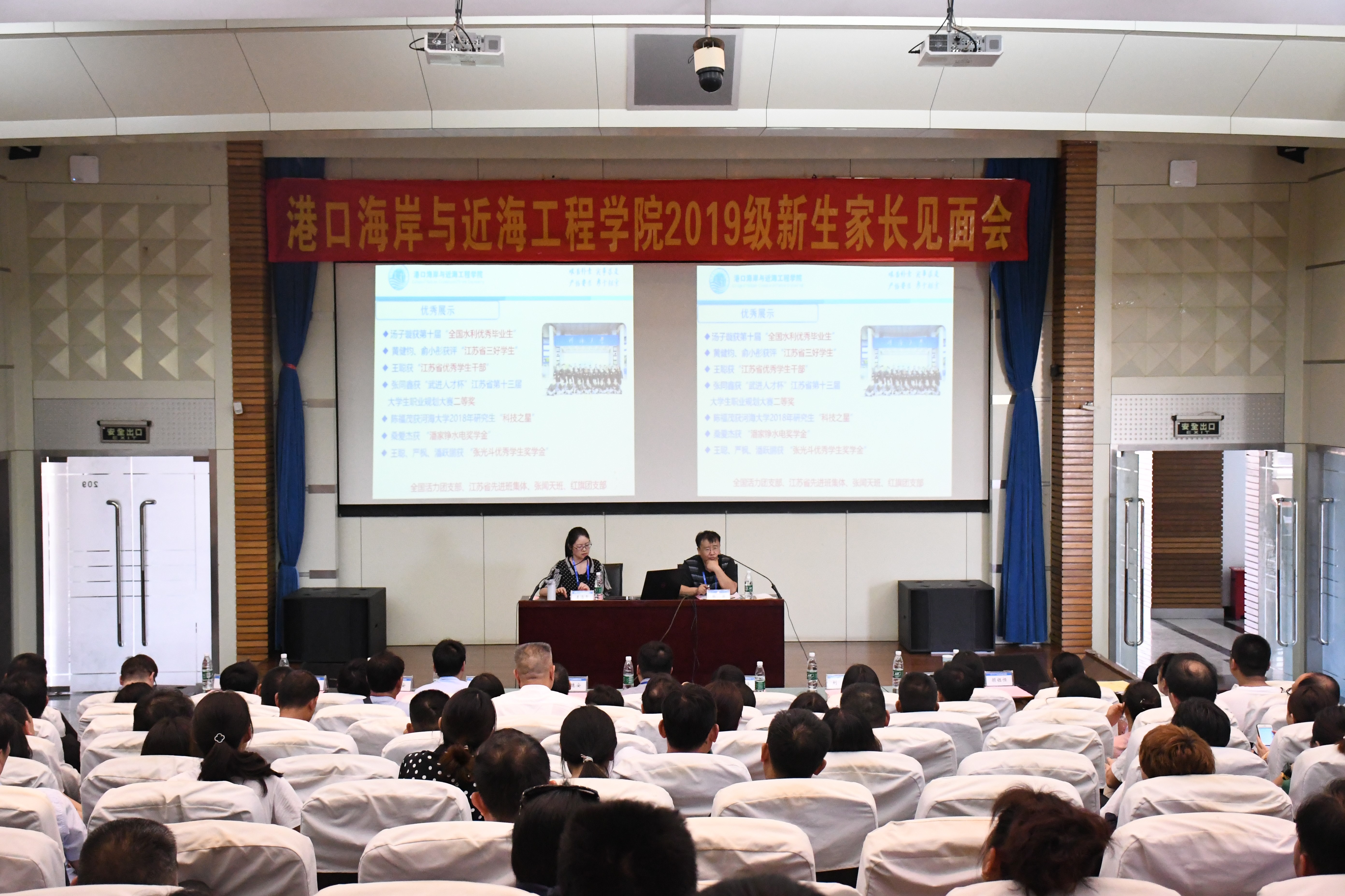 8月24日下午1点半,金神赌场 2019级新生家长见面会在江宁校区江宁会议中心举行。金神赌场 副院长张蔚、党委副书记姜海霞、海岸所支部书记陶建峰、2019级各班班导师、本科教学秘书、各年级辅导员出席了此次家长见面会。