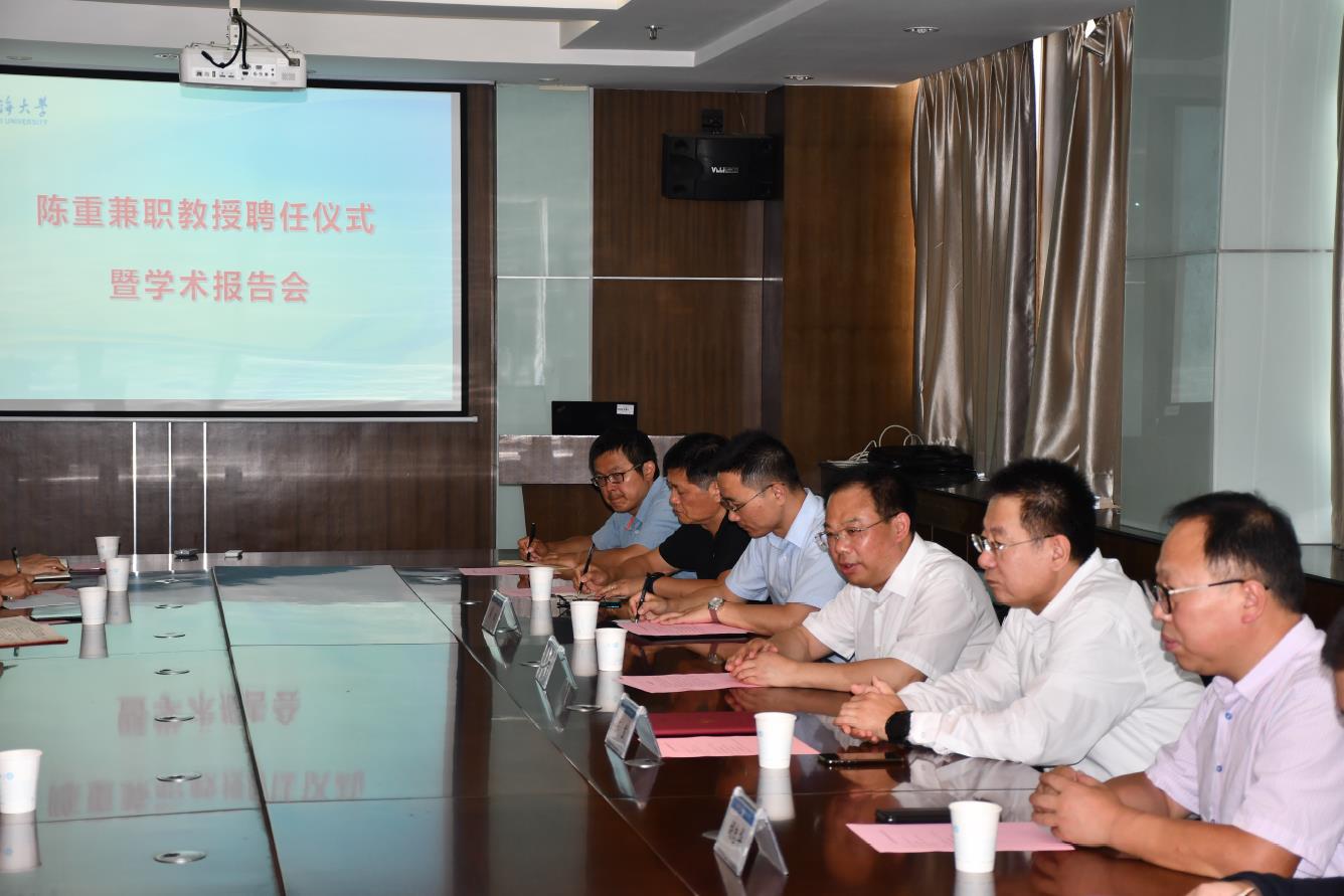 8月24日下午,金神赌场 举行河海大学兼职教授聘任仪式,聘任中国交建海外事业部总经理、教授级高级工程师陈重博士为我校兼职教授。徐辉校长参加受聘仪式,为陈重总经理颁发了河海大学兼职教授聘书,学生代表为陈重总经理佩戴了河海大学校徽。院党委胡忠华书记主持聘任仪式。