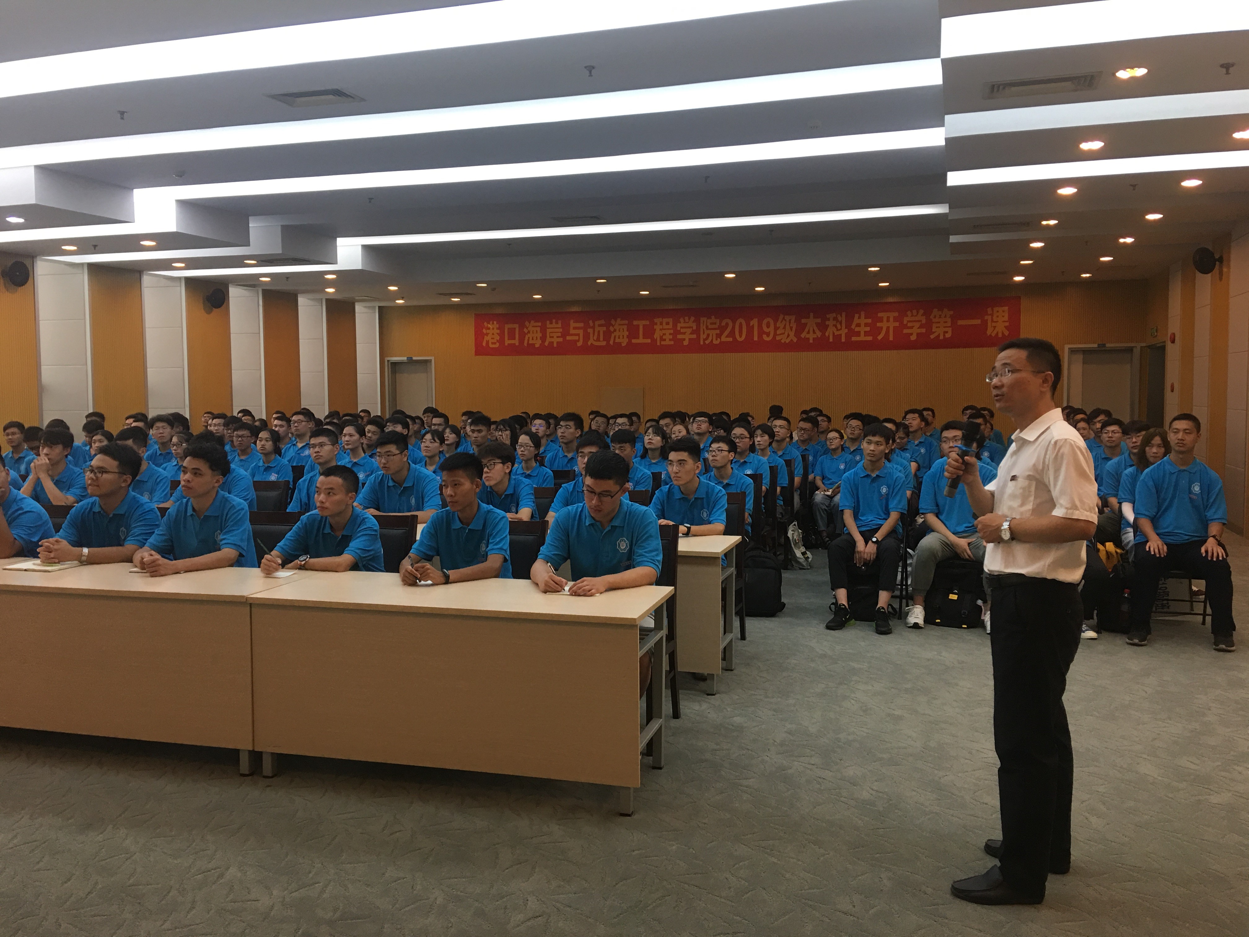 典礼结束后,龚政院长以“港航海资,携手前行”为主题给2019级本科新生讲授开学第一课。他以“河海”、“水利”、“港航”、“海资”四个关键词为引言,从发展历程、发展现状和卓越贡献三方面简略介绍了河海大学,从发展历程、师资队伍、学科专业和教学教育四个方面介绍了金神赌场 ,并以港口工程、航道工程和海岸工程三个板块阐述了港口航道与海岸工程和海洋资源开发技术两个专业的精髓所在,同时他用“舟楫之便,向海而兴”八个字强调了两个专业的意义与优势所在。在龚政院长细致的介绍下,新生们初步了解了金神赌场 的发展历史和专业发展趋势,并就军港建设和科研两个方面提出了疑问,龚院长为此一一解答。