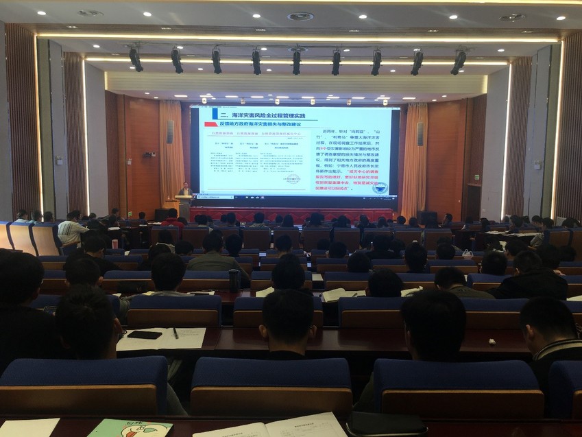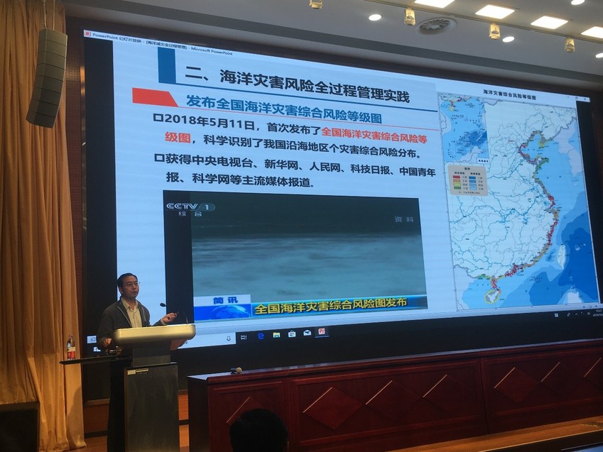 2019年10月18日上午,海岸灾害及防护教育部重点实验室系列特邀学术报告会在河海大学科学会堂3楼举行。自然资源部海洋减灾中心王斌主任受邀做了题为“海洋灾害风险全过程管理的实践探索”的学术报告。