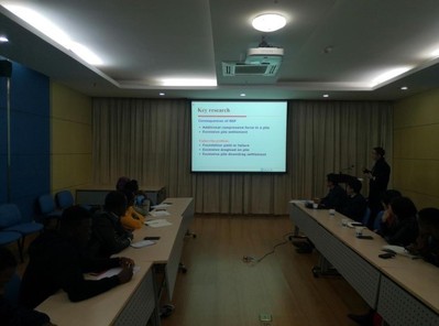 会议开始,陈永平教授对2019级留学生表示热烈欢迎,并介绍本次活动的目的和意义。随后,导师们依次介绍了个人情况、研究方向及联系方式等,留学生们对导师们所介绍内容表现出了浓厚兴趣并进行了积极交流。最后,针对留学生们提出的当前面临的主要问题,陈永平教授做了一一解答。