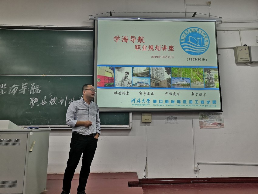 2019年10月23日晚,职业生涯规划讲座在本部工程馆106教室举行。本次讲座邀请研究生辅导员林凡老师作为主讲人,学院2017级本科生参加。