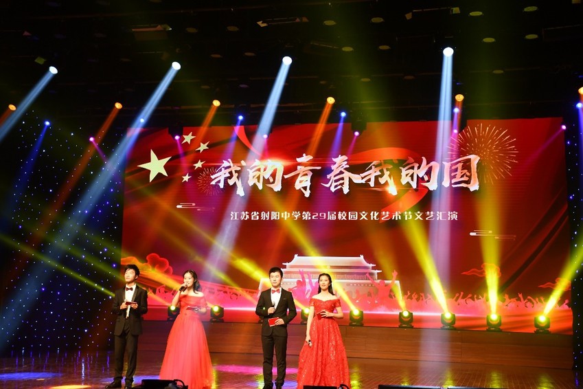辅导员赵越以及健美操队、民族乐团同学一行约30人为射阳中学校园文化艺术节文艺汇演送上了健美操《跳动的音符》、二胡齐奏《战马奔腾》节目。现场高潮迭起、掌声雷动,给观众们留下了深刻印象。