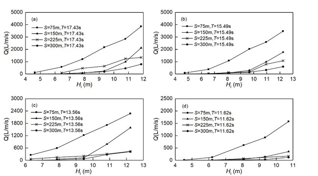 图3.1.3 珊瑚礁防浪建筑物越浪量与距离之间的关系