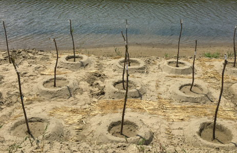 图3.4.7 微生物基覆盖材料促进柽柳生长(左图为移植阶段,右图为8个月后) |
