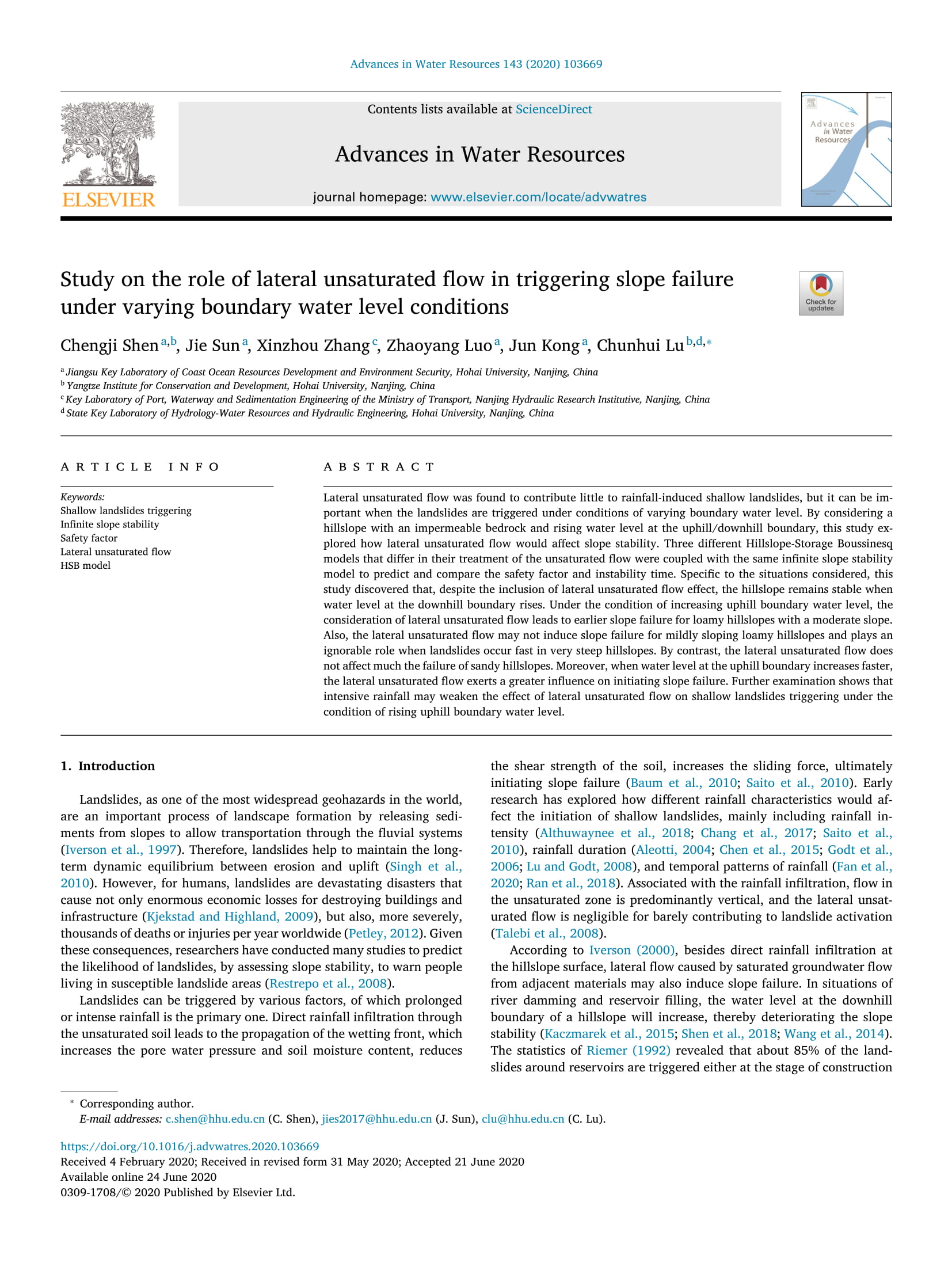 近日,金神赌场 海防所教师沈城吉博士、孔俊教授等在国际权威期刊《Advances in Water Resources》上发表了题为“Study on the role of lateral unsaturated flow in triggering slope failure under varying boundary water level conditions”的学术论文。