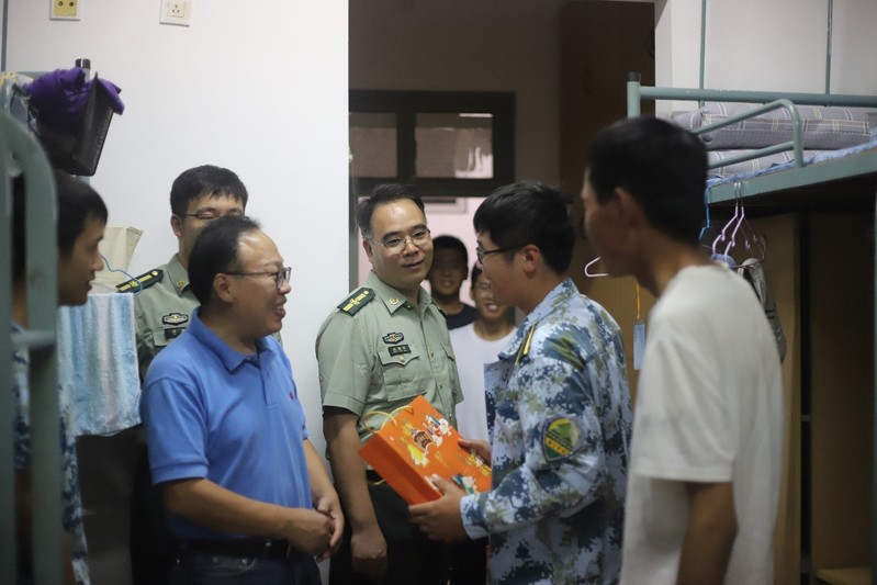 走访过程中,胡书记和沈书记同新生们展开了热情交谈,殷切关心同学们军训中的身体状况,询问同学们对大学生活的适应情况,了解同学们国庆假期的计划安排,提出具有针对性的疫情防控措施。同学们向两位书记介绍了自己的生活状态和对未来生活的期待,并认真听取了书记们的建议。最后,学院领导们一同为新生送上月饼礼盒,并表达了学院对学生的祝福,鼓励同学们积极适应大学生活。