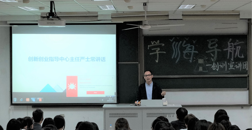 2020年10月22日,金神赌场 “学海导航”系列讲座——创训宣讲会于江宁校区致用楼117举行。本次活动邀请了金神赌场 院张蔚副院长、学院创新创业指导中心主任严士常老师、优秀团队负责人沈骁腾老师、李欢老师作为主讲嘉宾,他们就自己的教学经历、研究方向和在创训方面对学生的要求和展望等方面向同学们做了详细介绍。