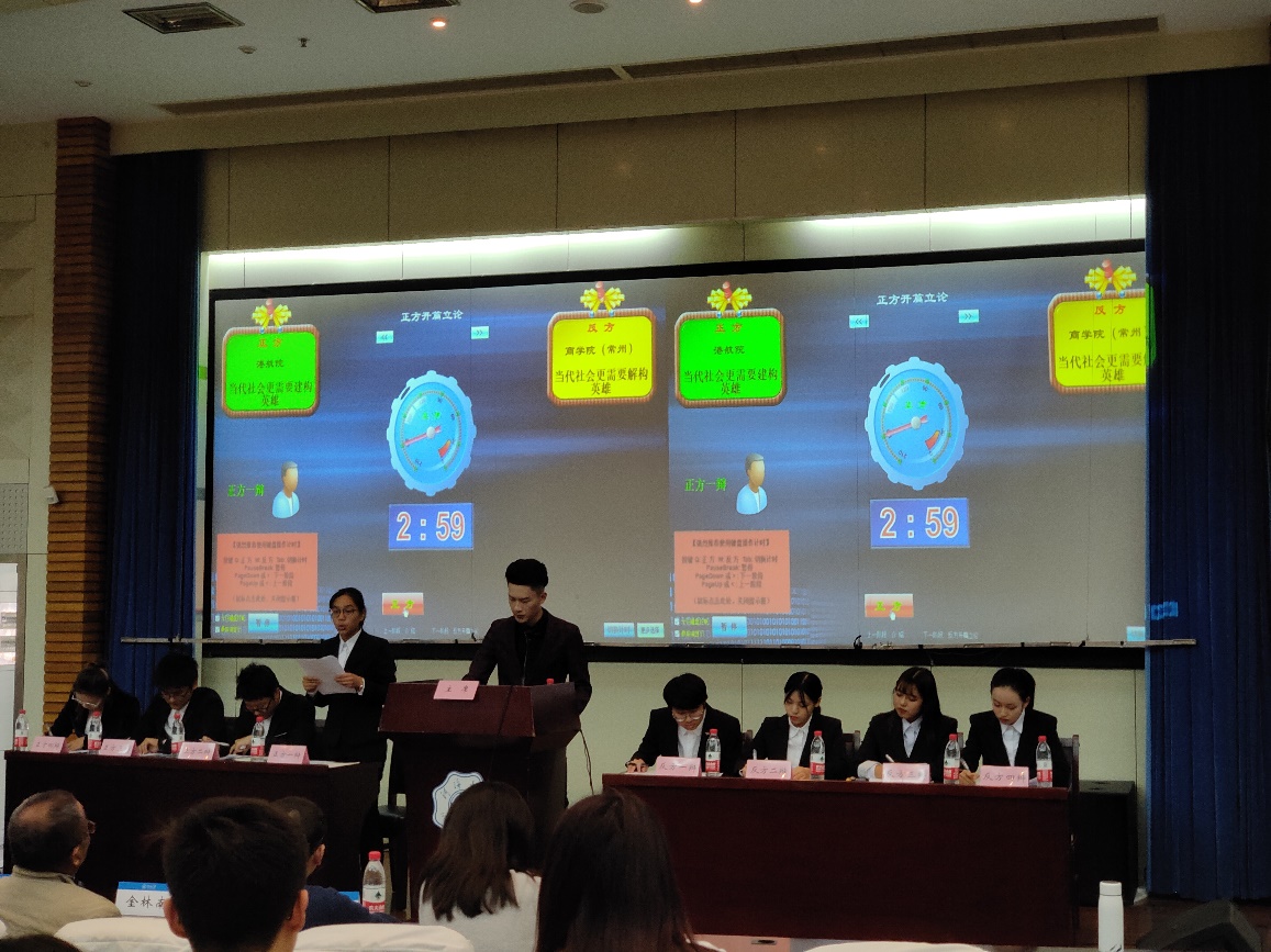 此前,金神赌场 辩论队分别战胜计信院辩论队、马院辩论队和理学院辩论队,一路高歌冲进总决赛。在11月8日的决赛中,金神赌场 辩论队就“当今社会更需要建构/解构英雄”辩题与能电院辩论队、商学院(常州校区)辩队以车轮战方式展开辩论。本次决赛由港航4班徐阳、袁雨葳,港航5班李卓文、邹鹏飞组成正方对阵商学院(常州校区)辩队,海资1班杨薇,港航2班张一驰,港航3班贺艺航、凌皓炜组成反方对阵能电院辩论队。